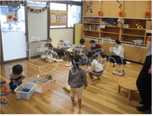 午後は、3組のおやこの参加でした。赤ちゃんもきてくれたので、少し月齢が上のおともだちは、赤ちゃんのそばに行って「よしよし」してくれていてとてもほっこりしました。月齢の近いお子さんは、おままごとで一緒に遊んでいました。終わりに絵本を読み「やさいのうた」の手遊びをしました。みんなお母さんと一緒に楽しんでくれていました。