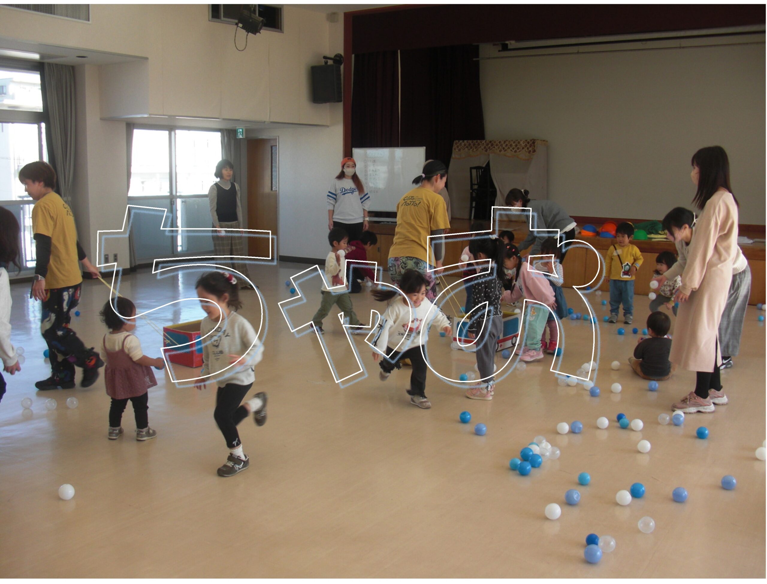 今日からおやこくらぶ春コースがスタートしました。「ぱんだクラス」は全員出席でした。「バスに乗って」のふれあい遊びが気に入ってくれたみたいで、にこにこと楽しそうにしてくれていました。ダンスやお歌も初めてでしたが、お母さんとスタッフの真似をして上手にしてくれていました。「はらぺこあおむし」の大型絵本を見たり、お部屋遊びでは、車やおままごとなど好きなおもちゃを選んで遊んでいました。