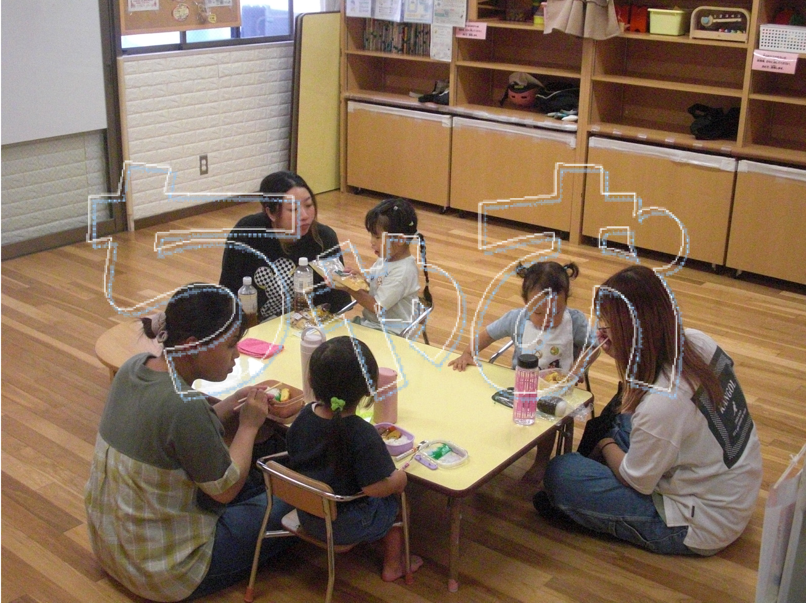 午後は2組で、4歳と2歳のお友達で仲良く、「ちょうだい・・」「ダメ・・」「どうぞ・・」と上手く譲り合って遊んでいました。細かい気持ちのやりとりを上手くママの声掛けで出来ていました。