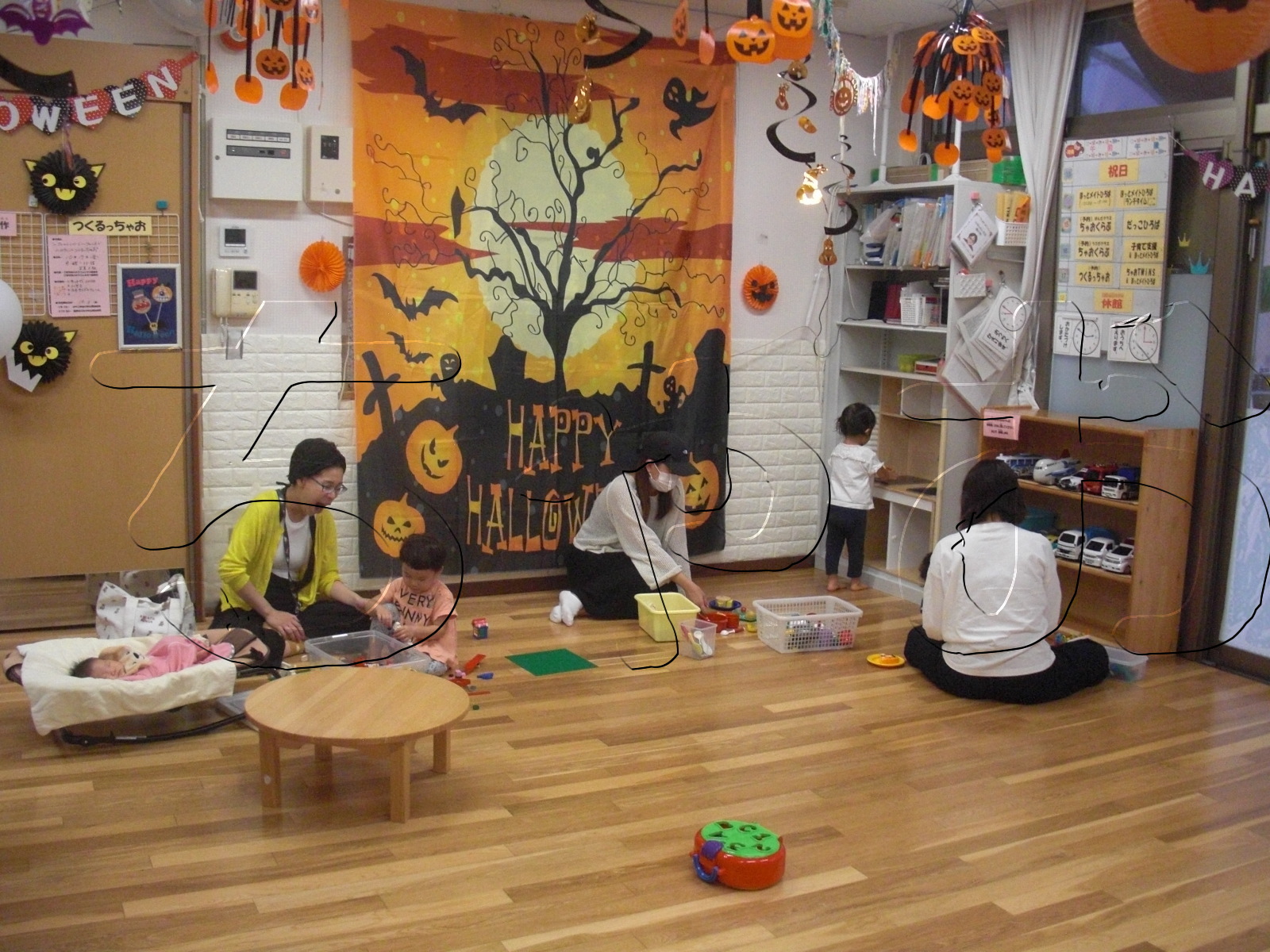 午前は「うさクラス」の8回目でした。動物の真似っこやダンスも上手に出来るようになったね!!「おもちゃのチャチャチャ」はお母さんが抱っこしてもらって上に高く上げてもらうと声を出して笑ってみんな嬉しそうでした。ハロウィンのお話や手遊びもしました。新しい手遊びも興味をもってしてくれていました。うさぎクラスはおしまいですが、またちゃおのイベントや室内開放に来てくださいね。