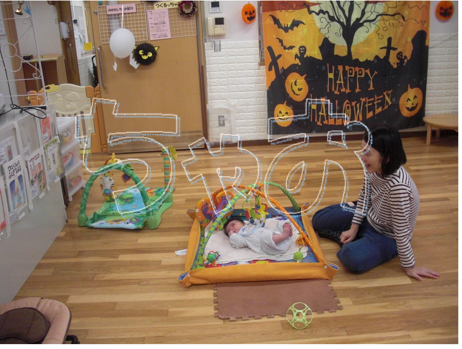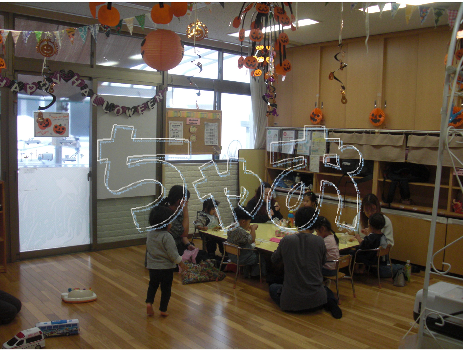 午後は初めての方も来ていただき、6組7名の参加でした。みんながよく知っている「ねないこだれだ」の絵本の紹介とおばけを制作しました。その後「ハッピー!ハロウィン!」「おおきなかぶ」の絵本も読みました。「おおきなかぶ」を読むと、ママ達に「懐かしい~」と喜んでいただきました。みんなで「うんとこしょ!どっこいしょ!」と言いながら、おおきなかぶを抜きました。
