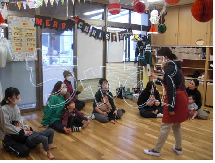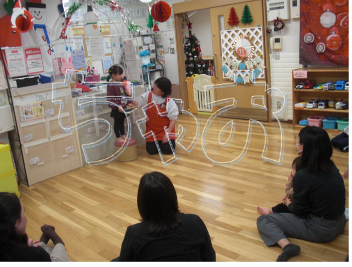 午後は、11月生まれのお誕生会でした。5組の親子が遊びに来てくれて、そのうち1組のお友達がお誕生日でした。お誕生会では、本日の主役の方にインタビューをして、得意なことや好きなことを教えてもらいました。4歳になったということで、覚えた「ことわざ」を披露してもらったり、お家で作ったアクセサリーを見せてもらったり、好きなあそびのお話をしてもらいました。みんなでハッピーバースデーのお歌をうたったり、「どこへいったの、いちごちゃん」のお話をきいたり、何の動物がかくれているのかを当ててもらったりしました。和やかな楽しいお誕生会でした。
