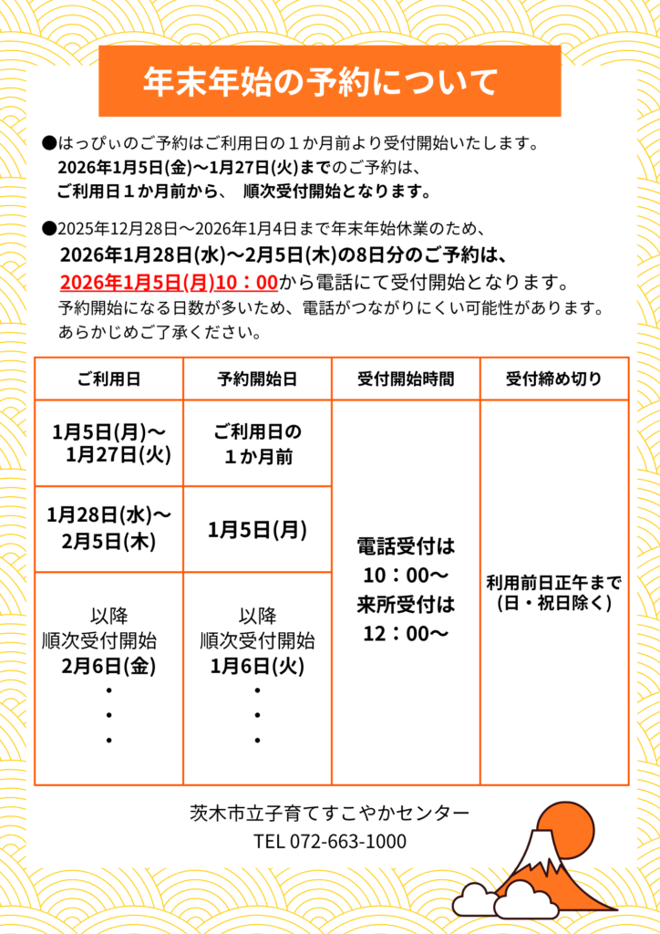 一時保育はっぴぃの年末年始の予約受付についてのお問い合わせをいただいております。