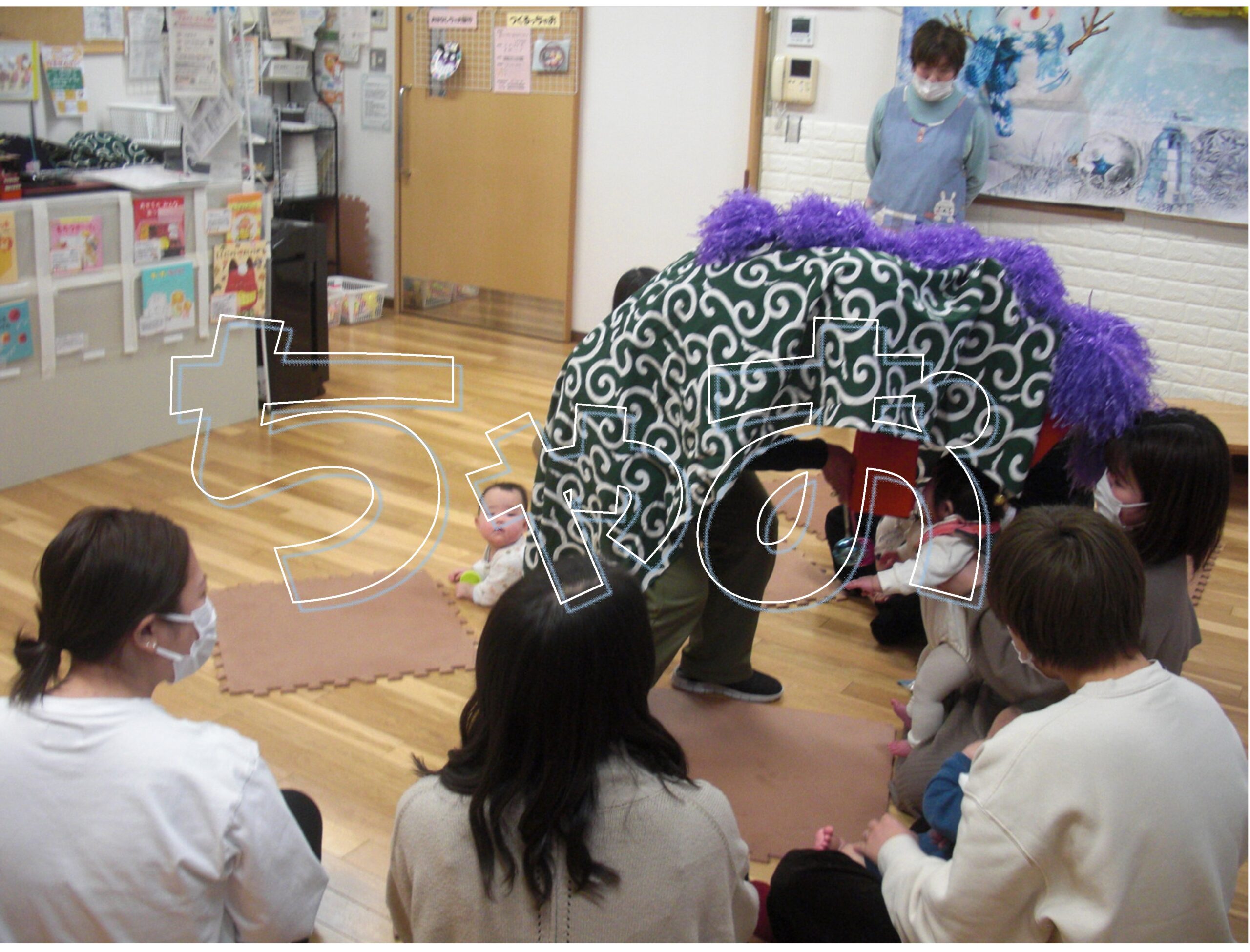 午前は、年明け初めてのちゃお「ほっとメイトひろば」でした。7組の親子が遊びに来てくれました。幼稚園に通っているお友達も来てくれて、子どもたち同士「一緒に遊ぼう」と声を掛け合って遊んでいました。「ししにゃいとおしょうがつ」の絵本を読みました。ししまいも登場してびっくりした表情をしたお友達もいましたが、頭をかんでもらったお友達も数名いました。怖がったお友達には小さいししまいにしました。今年も沢山良い事があるといいですね。ちゃおにも沢山遊びに来てね!