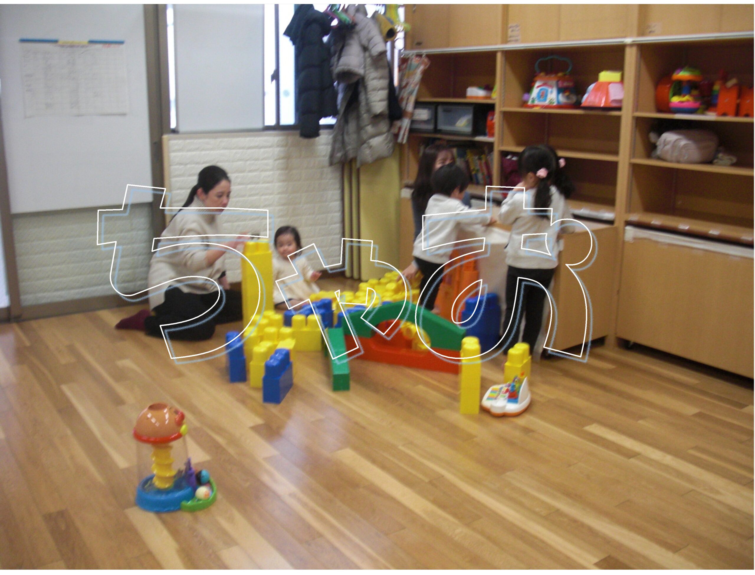午前は「papaと一緒にあそぼう」でした。この冬一番の寒波だと言われる寒さなので「誰か来てくれるかなぁー」と思っていましたが、2組のおともだちがきてくれました。初めは、パトカーや消防車、ゴミ収集車などの車を並べてサイレンを鳴らし動かして遊んでいました。その後は、大型ブロックでおうちを作ったりレールの上にアンパンマンの列車を走らせて動くのを嬉しそうにジーっと見たりしていました。