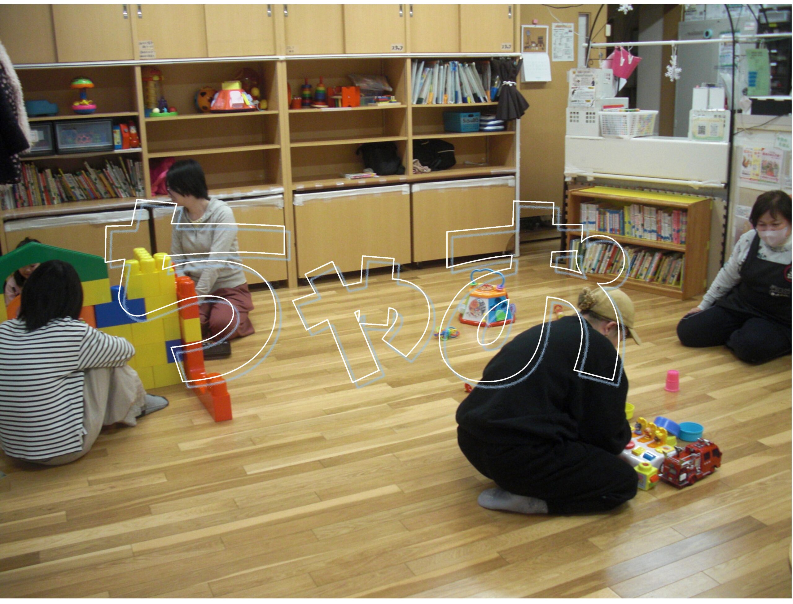 午後からも4組遊びに来てくれました。初めて来てくださった方も久しぶりに来てくれた方もおられました。ずりばいで好きな玩具のところへ行ったり、塗り絵をしたり、大きいお姉さんは、大型ブロックでお家を作ってごっこ遊びを楽しんでいました。