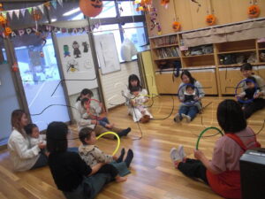 午前は「ちゃおくらぶうさぎクラス」の6回目でした。「どんなが色が好き」の曲に合わせて色カードを出したり「かえるのうた」をピアノに合わせてカスタネットをたたきました。ちゃおまつりに向けてのダンスもしました。パラバルーンや玉入れも元気いっぱい楽しみました。
